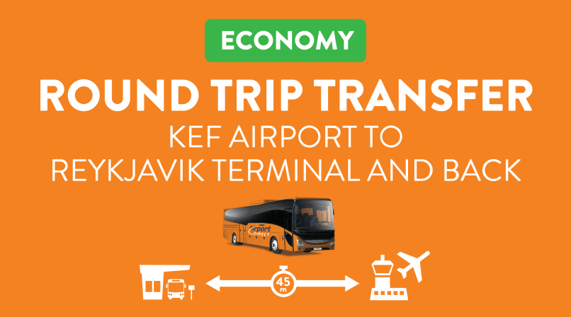 Return transfer from Keflavik International Airport (KEF) to Reykjavik Terminal - Skogarhlid 10, 105 Reykjavik or Hamraborg Bus Stop.